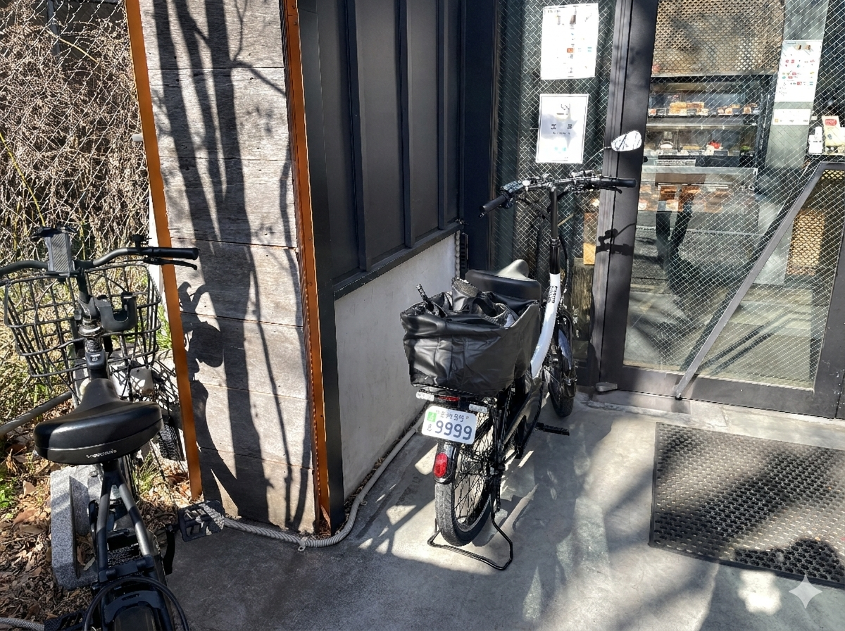 平日の午前9時。駐輪場にはすでにご近所の方々のものと思われる自転車がずらりと並んでいましたが、幸い一台分のスペースを発見。愛車のMUをサッと停めて店内へ向かいました。
