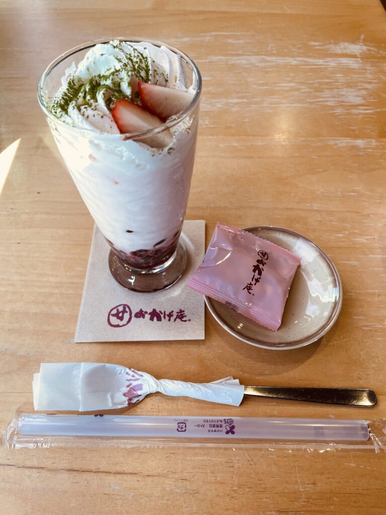 平日の午後ということもあり、店内は比較的空いていて、ゆったりとした時間が流れていました。今回いただいたのは、季節メニューの「抹茶かおるわらび餅いり苺みるく」。 中に小さなわらび餅が入っていて、太めのストローでタピオカのような食感を楽しめます。抹茶の香りと苺の甘酸っぱさが絶妙で、まさに至福の一杯。